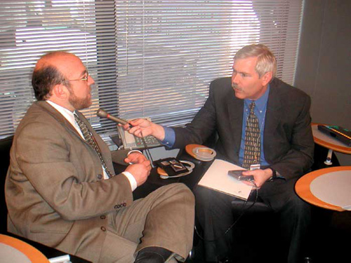 Eric Zarakov (left) Vice President, Marketing, Foveon, Inc. during a radio interview with Fred Fishkin (right) Host of Bloomberg Bootcamp.