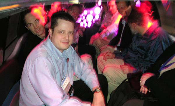 of Imaging Resource shares a ride with other editors after a Konica Minolta event during PMA 2004.